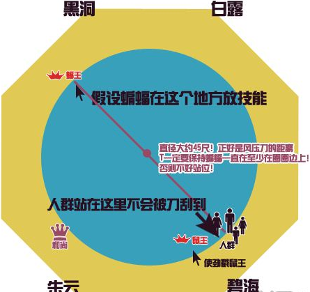 (2)蝙蝠的技能是飞刀,远离蝙蝠45尺之外,不管你站哪儿,速度离开45尺之外!没离开看身上出伤害了一个扶摇加聂云赶紧出来!【如下图】